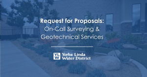 YLWD is requesting proposals to provide Multiple Award Task Order Contract (MATOC) for On-Call Land Surveying Services and On-Call Geotechnical Observation & Material Testing Services. Both contracts are on an as-needed basis for various water and wastewater projects and tasks in compliance with the District’s policies and standards.
